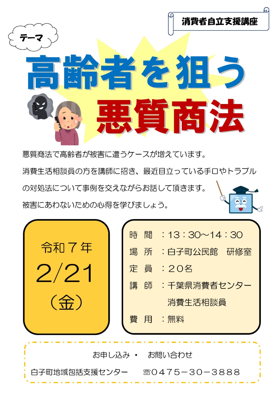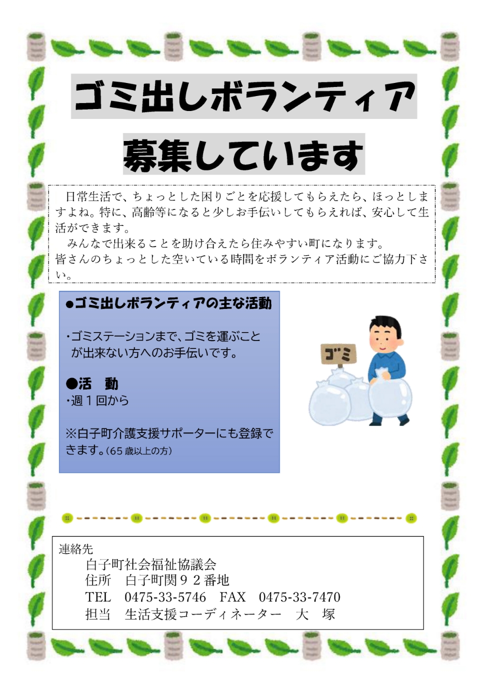 問い合わせ:0475-33-2179(白子町健幸づくりセンター)